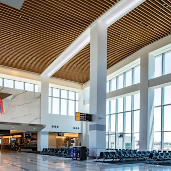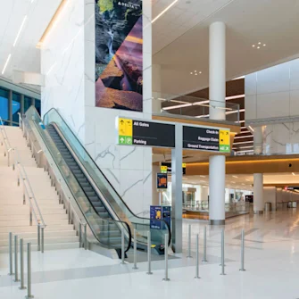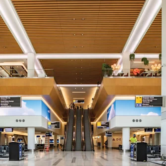 As we walk through this 1.3-million-square-foot, 37-gate terminal, Marzullo shares details of Delta’s objectives: “Notorious as it was for poor service, LaGuardia had a compact, quick, in-and-out appeal because of its proximity to Manhattan. And we wanted to maintain that for our business customers. We designed this new terminal for speed and efficiency,” he says, striding through the space wrapped in 25-foot floor-to-ceiling electrochromic glass (smart glass that tints to reduce glare) like he owns it. Because, in a sense, he does.