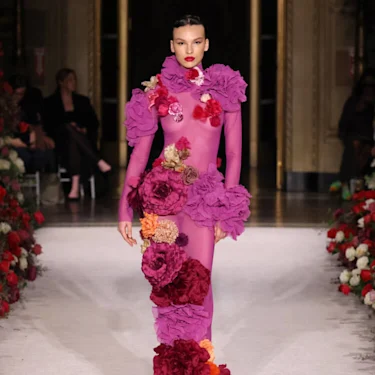 Christian Siriano’s Fall/Winter collection features Viva Magenta, Red Dahlia and Rose Violet. Credit: Getty Images