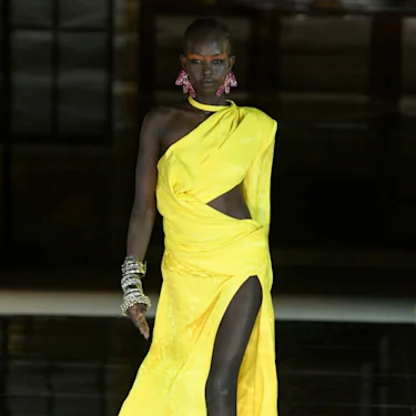 A model walks the runway in High Visibility yellow at the Prabal Gurung show during New York Fashion Week. Credit: Getty Images