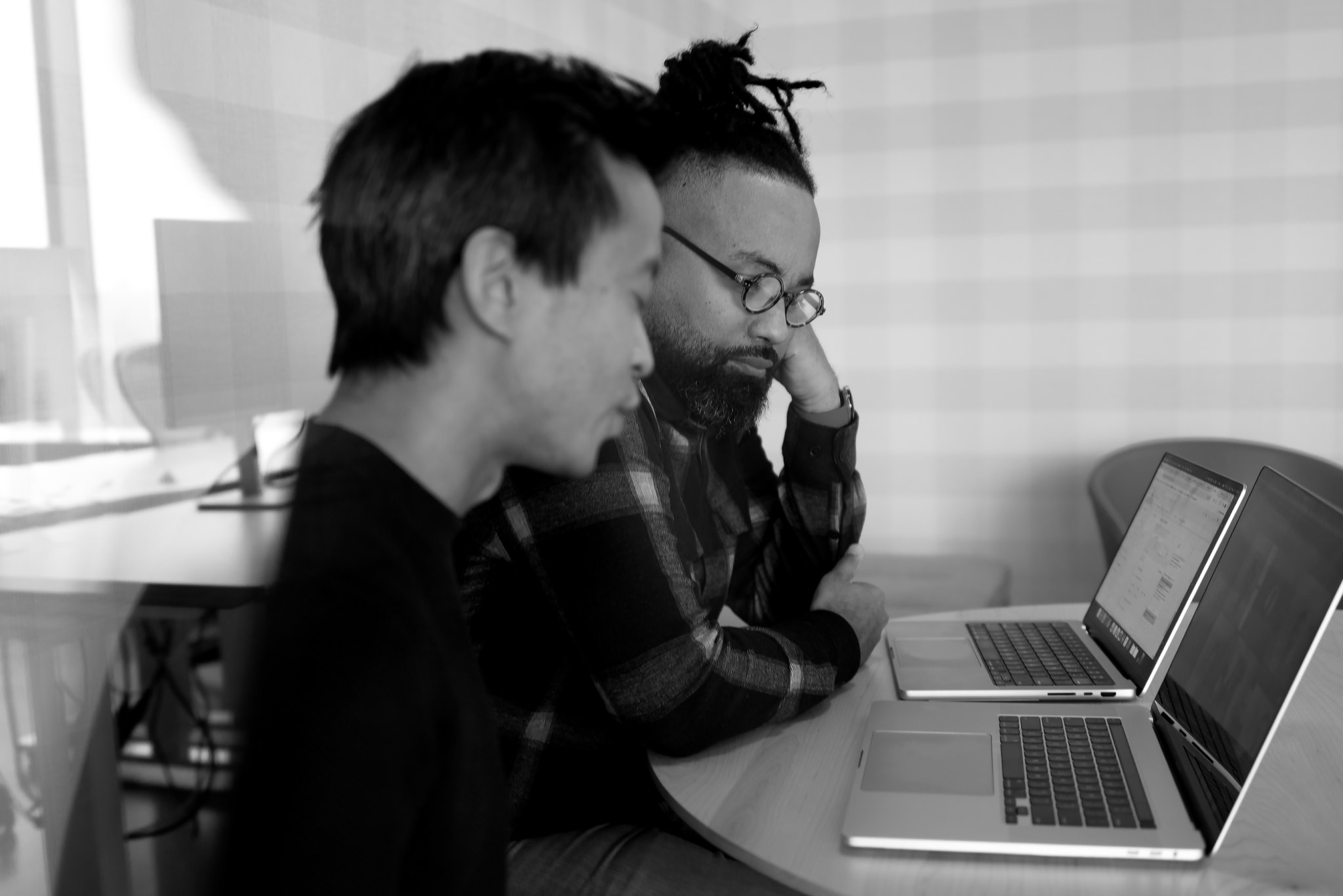 Cavan and Andre at Huge’s headquarters in Brooklyn’s Navy Yard.