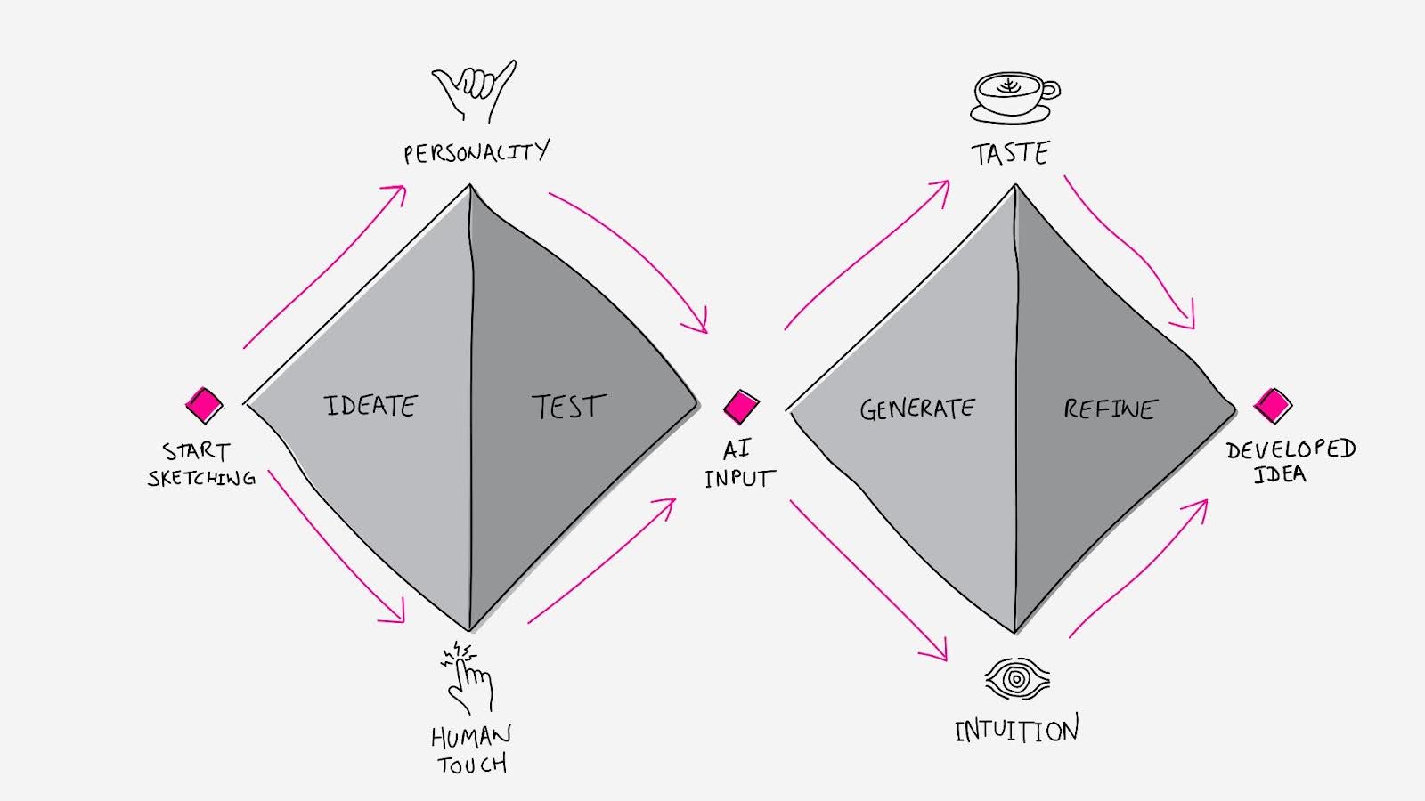 As designers embrace both analogue and digital tools, they unlock new possibilities for innovation and disruption. With AI, designers can push the boundaries of creativity and pave the way for a more inclusive and empathetic future. Drawing can help generate new ideas as well as forge new connections and understanding of problems. It also allows us to give a more thoughtful input while maintaining a feeling of creativity in the future of our design process.